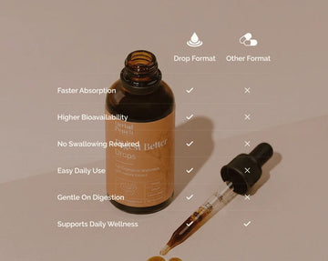Liquid drops allow for more efficient absorption and improved bioavailability, supporting faster uptake without burdening digestion. Simple to take after meals or as part of a daily routine, they remove the inconvenience of bulky pills and support consistent use.